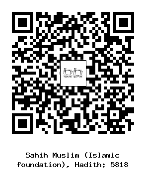 ৫৮১৮। হাদ্দাব ইবনু খালিদ ও শায়বান ইবনু ফাররুখ (রহঃ) ... আনাস ইবনু মালিক (রাঃ) থেকে বর্ণিত। তিনি বলেন, রাসুলুল্লাহ সাল্লাল্লাহু আলাইহি ওয়াসাল্লাম বলেছেন, রাত্রে আমার একটি সন্তান জন্মলাভ করে, আমি তার নাম আমার পিতা ইবরাহীম (আলাইহিস সালাম) এর নামে রাখি। তারপর তিনি ঐ সন্তানকে উম্মে সাইফ নামক একজন মহিলা কে দিলেন। তিনি ছিলেন একজন কর্মকারের স্ত্রী। কর্মকারের নাম আবূ সাইফ। নবী সাল্লাল্লাহু আলাইহি ওয়াসাল্লাম একদিন আবূ সাইফ এর নিকট যাচ্ছিলেন আর আমিও তার সাথে যাচ্ছিলাম। যখন আমরা আবূ সাইফের ঘরে উপস্থিত হই, তখন সে তার হাঁপর বা ফুঁকনীতে ফুঁ দিচ্ছিল, পূর্ণ ঘর ধোঁয়ায় ভরপুর ছিল।