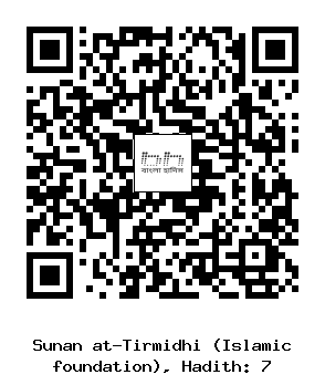 ৭. মুহাম্মাদ ইবনু ইসমাঈল (রহঃ) ..... আইশা রাদিয়াল্লাহু আনহা থেকে বর্ণনা করেন যে, নবী সাল্লাল্লাহু আলাইহি ওয়াসাল্লাম পায়খানা থেকে বের হওয়ার সময় বলতেনঃ غُفْرَانَكَ হে আল্লাহ, তোমার কাছে ক্ষমা চাই। - ইবনু মাজাহ ৩০০, তিরমিজী হাদিস নম্বরঃ ৭ [আল মাদানী প্রকাশনী]