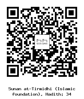 ৩৪. কুতায়বা (রহঃ) ..... রুবায়্যি’ বিনত মুআববিয ইবনু ’আফরা রাদিয়াল্লাহু আনহ থেকে বর্ণনা করেন যে, তিনি রাসূলসাল্লাল্লাহু আলাইহি ওয়াসাল্লামকে উযূ (ওজু/অজু/অযু) করতে দেখেছেন। রুবায়্য’ বলেন, তিনি তাঁর মাথার সম্মুখ ভাগ ও পশ্চাৎ,কানপট্টি এবং তাঁর দুইকান একবার মাসেহ করলেন। - তিরমিজী হাদিস নম্বরঃ ৩৪ [আল মাদানী প্রকাশনী]