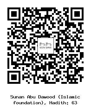৬৩. মুহাম্মাদ ইবনুল আলা .... উবায়দুল্লাহ ইবনু আব্দুর রহমান উমার (রহঃ) তাঁর পিতার সূত্রে বর্ণনা করেছেন। তিনি বলেছেন, একদা রাসূলুল্লাহ্ সাল্লাল্লাহু আলাইহি ওয়া সাল্লামকে জিজ্ঞেস করা হল যে, পানিতে চতুষ্পদ জন্তু হিংস্র প্রাণী পানি পান করার জন্য পূনঃ পূনঃ আগমন করে এবং তা যথেচ্ছা ব্যবহার করে। সে পানির হুকুম কি? তিনি বলেনঃ যখন উক্ত পানি দুই কুল্লার (মটকা) পরিমাণ বেশী হবে, তা অপবিত্র হবে না। (তিরমিযী, নাসাঈ, ইবনু মাজাহ)।