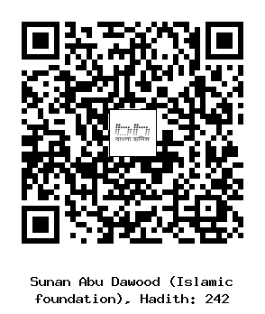 ২৪২. সুলায়মান .... আয়িশা (রাঃ) হতে বর্ণিত। তিনি বলেন, রাসূলুল্লাহ্ সাল্লাল্লাহু আলাইহি ওয়া সাল্লাম অপবিত্রতার গোসলের সময় (সুলায়মানের বর্ণনানুযায়ী) ডান হাত দিয়ে পানি ঢালা শুরু করতেন এবং রাবী মুসাদ্দাদের বর্ণনা মতে, তিনি (সাল্লাল্লাহু আলাইহি ওয়াসাল্লাম) উভয় হাত ধৌত করার পর ডান হাতে পানি ঢালতেন। অতঃপর উভয় রাবী এই পর্যায়ে ঐক্যমত পোষণ করেন যে, অতঃপর তিনি স্বীয় লজ্জাস্থান ধৌত করতেন। রাবী মুসাদ্দাদ বলেন, (ডান হাতের পর) বাম হাতে পানি ঢালতেন, কখনও কখনও আয়িশা (রাঃ) সরাসরিفرج (পুরুষাংগ) শব্দ ব্যবহার না করে তদস্থলে অন্য শব্দ ব্যবহার করতেন। অতঃপর নামাযের উযূর ন্যায় উযূ (ওজু/অজু/অযু) করতেন। তিনি উভয় হাত পাত্রের মধ্যে প্রবেশ করিয়ে পানি নিতেন এবং শরীরের লোমকূপ (চুল) মর্দন করতেন। এভাবে যখন তিনি দেখতেন যে, সর্বাংগে পানি পৌছেছে অথবা সমস্ত শরীর পবিত্র হয়েছে- তখন তিনি মাথায় তিনবার পানি ঢালতেন। অতঃপর পানি অবশিষ্ট থাকলে তা মাথায় ঢালতেন। (বুখারী, মুসলিম, তিরমিযী, ইবনু মাজাহ)