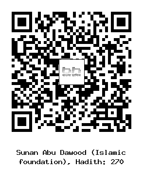 ২৭০. আবদুল্লাহ্ ইবনু মাসলামা .... উমারা ইবনু গুরাব হতে বর্ণিত। তিনি বলেন, তাঁর ফুফু তাঁর নিকট বর্ণনা করেন যে, এক সময় আয়িশা (রাঃ)-কে জিজ্ঞাসা করেনঃ আমাদের কারও কারও যখন হায়েয হয় তখন তার ও তার স্বামী পৃথকভাবে থাকার জন্য কোন আলাদা বিছানা নাই, বরং একই বিছানায় থাকতে হয়, এমতাবস্থায় করণীয় কি? জবাবে আয়িশা (রাঃ) বলেন, এ সম্পর্কে আমি তোমার নিকট রাসূলুল্লাহ্ সাল্লাল্লাহু আলাইহি ওয়া সাল্লামের একটি ঘটনা বর্ণনা করব। একদা রাতে তিনি আমার ঘরে প্রবেশ করেন, তখন আমি ঋতুবতী ছিলাম। তিনি মসজিদে নববীতে যান। অতঃপর আমি ঘুমিয়ে যাওয়ার পর তিনি শীতে কাতর অবস্থায় আসেন। আমাকে বলেন, আমার নিকটে এসো (আমার শরীরের সাথে মিশে যাও)। আমি বললাম, আমি তো ঋতুবতী। নবী সাল্লাল্লাহু আলাইহি ওয়াসাল্লাম বলেন, তুমি তোমার উরুদেশ উন্মুক্ত কর। তখন আমি আমার উরুদেশ উন্মুক্ত করি। তিনি তাঁর মুখমণ্ডল ও বক্ষস্থল (গরম হওয়ার জন্য) আমার উরুদেশে স্থাপন করেন এবং আমিও তাঁর প্রতি ঝুকে পড়ি। অতঃপর তিনি শীতের তীব্রতা হতে মুক্ত হয়ে ঘুমিয়ে পড়েন।