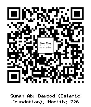 ৭২৬. মূসা’দ্দাদ ..... ওয়ায়েল ইবনু হুজর (রাঃ) হতে বর্ণিত। তিনি বলেন, আমি তোমাদেরকে রাসূলুল্লাহ সাল্লাল্লাহু আলাইহি ওয়া সাল্লামের নামায পড়ার নিয়ম দেখাব। তিনি বলেন, রাসূলুল্লাহ সাল্লাল্লাহু আলাইহি ওয়া সাল্লাম কিবলামুখী হয়ে দাঁড়িয়ে তাকবীর বলে নিজের উভয় হাত কান পর্যন্ত উত্তোলন করেন। অতঃপর তিনি স্বীয় বাম হাত ডান হাত দিয়ে ধরেন এবং রুকূ করার সময় উভয় হাত ঐরূপ উত্তোলন করেন। অতঃপর তিনি তাঁর দুই হাত দুই হাটুর উপর রাখেন। রুকূ হতে মাথা উঠাবার সময় তিনি উভয় হাত তদ্রুপ উত্তোলন করেন। অতঃপর তিনি সিজদায় স্বীয় মাথা দুই হাতের মধ্যবর্তী স্থানে রাখেন এবং বাম পা বিছিয়ে বসেন। অতঃপর তিনি তাঁর বাম হাত বাম রানের উপর এবং ডান হাত ডান রানের উপর বিচ্ছিন্নভাবে রাখেন। পরে তিনি স্বীয় ডান হাতের কনিষ্ঠ ও অনামিকা অংগুলিদ্বয় আবদ্ধ করে রাখেন এবং মধ্যমা ও বৃদ্ধাংগুলি বৃত্তাকার করেন এবং শাহাদাত অঙ্গুলি (তর্জনী) দ্বারা ইাশারা করেন। (নাসাঈ, ইবনু মাজাহ)।