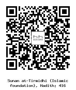 ৪১৬. সালিহ ইবনু আবদুল্লাহ রাদিয়াল্লাহু আনহু ...... আয়িশা রাদিয়াল্লাহু আনহা থেকে বর্ণিত যে, রাসূল সাল্লাল্লাহু আলাইহি ওয়াসাল্লামইরশাদ করেন, ফজরের দু’রাকআত সালাত (নামায/নামাজ) দুনিয়া এবং সবকিছু থেকে উত্তম। - ইরওয়া ৪৩৭, মুসলিম, তিরমিজী হাদিস নম্বরঃ ৪১৬ [আল মাদানী প্রকাশনী]