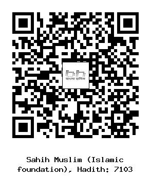 ৭১০৩। আলী ইবনু হুজর (রহঃ) ... উকবা ইবনু আমির ও আবূ মাসউদ আনসারী (রাঃ) থেকে বর্ণিত। রিবঈ ইবনু হিরাশ (রহঃ) বলেন, আমি তার [উকবা ইবনু আমির ও আবূ মাসউদ আনসারী (রাঃ)] এর সাথে হুযায়ফা ইবনু ইয়ামান (রাঃ) এর নিকট গেলাম। তারপর উকবা (রাঃ) হুযায়ফা (রাঃ) কে বললেন, আপনি দাজ্জাল সম্পর্কে রাসুলুল্লাহ সাল্লাল্লাহু আলাইহি ওয়াসাল্লাম থেকে যা যা শুনেছেন তা আমাদেরকেও শোনান। তিনি বললেন, দাজ্জাল যখন আবির্ভূত হবে তখন তার সাথে পানি ও আগুন থাকবে। কিন্ত্বু মানুষ যাকে পানি দেখবে সেটা হবে দাহনশীল আগুন। আর যেটাকে মানুষ আগুন দেখবে সেটা হবে সুমিষ্ট ঠাণ্ডা পানি। কাজেই তোমাদের মধ্যে যে কেউ এ সময়কাল পায় সে যেন দৃশ্যত যাকে আগুন দেখা যাচ্ছে তাতেই প্রবেশ করে। কেননা প্রকৃতপক্ষে সেটা হবে সুপেয় সুমিষ্ট পানি। তারপর হুযায়ফা (রাঃ) এর সত্যায়নে উকবা [আবু মাসউদ (রাঃ)] বলেন, আমিও রাসুলুল্লাহ সাল্লাল্লাহু আলাইহি ওয়াসাল্লাম থেকে এ হাদীস শুনেছি।