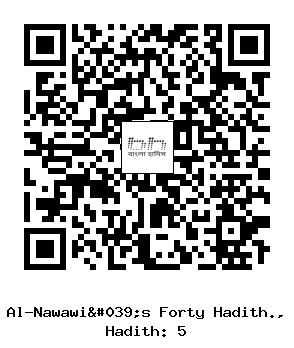 ৫। উম্মুল মু'মিনীন আয়েশা রাদিয়াল্লাহু ‘আনহা হতে বর্ণিত হয়েছে, তিনি বলেন- রাসূলুল্লাহ্ সাল্লাল্লাহু ‘আলাইহি ওয়াসাল্লাম বলেছেন: