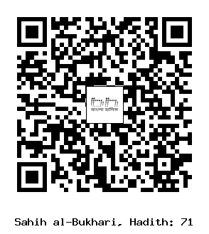 ৭১. হুমায়দ ইবনু ‘আবদুর রহমান (রহ.) হতে বর্ণিত। তিনি বলেনঃ আমি মু‘আবিয়াহ (রাযি.)-কে খুৎবায় বলতে শুনেছি, তিনি বলেন, আমি নবী সাল্লাল্লাহু আলাইহি ওয়াসাল্লাম -কে বলতে শুনেছি, আল্লাহ্ যার মঙ্গল চান, তাকে দ্বীনের ‘ইল্ম দান করেন। আমি তো বিতরণকারী মাত্র, আল্লাহ্ই (জ্ঞান) দাতা। সর্বদাই এ উম্মাত কিয়ামত পর্যন্ত আল্লাহর হুকুমের উপর কায়িম থাকবে, বিরোধিতাকারীরা তাদের কোন ক্ষতি করতে পারবে না। (৩১১৬, ৩৬৪১,৭৩১২, ৭৪৬০; মুসলিম ১২/৩৩ হাঃ ১০৩৭, আহমাদ ১৬৮৪৯, ১৬৮৭৮, ১৬৯১০) (আধুনিক প্রকাশনীঃ ৭১, ইসলামিক ফাউন্ডেশনঃ ৭১)