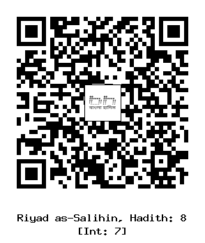 ৮/৮। আবূ হুরাইরাহ আব্দুর রহমান ইবনু সাখর রাদিয়াল্লাহু ’আনহু কর্তৃক বর্ণিত, রাসূলুল্লাহ সাল্লাল্লাহু আলাইহি ওয়াসাল্লাম বলেছেন, ’’নিশ্চয় আল্লাহ তা’আলা তোমাদের দেহ এবং তোমাদের আকৃতি দেখেন না, বরং তিনি তোমাদের অন্তর ও আমল দেখেন।’’[1]