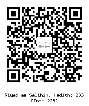 ৭/২৩৩। আবূ হুরাইরাহ রাদিয়াল্লাহু ’আনহু বর্ণনা করেন, রাসূলুল্লাহ সাল্লাল্লাহু আলাইহি ওয়াসাল্লাম বলেছেন, ’’তোমাদের কেউ যখন লোকদের নিয়ে নামায পড়ে, তখন সে যেন সংক্ষেপ করে। কারণ তাদের মাঝে দুর্বল, অসুস্থ ও বৃদ্ধ লোক থাকে। আর যখন কেউ একাকী নামায পড়ে, তখন সে ইচ্ছামত দীর্ঘ করতে পারে।’’ (বুখারী ও মুসলিম) [1]