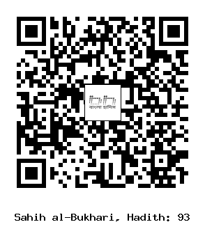৯৩. আনাস ইবনু মালিক (রাযি.) হতে বর্ণিত। একদা আল্লাহর রাসূল সাল্লাল্লাহু আলাইহি ওয়াসাল্লাম বের হলেন। তখন ‘আবদুল্লাহ্ ইবনু হুযাফাহ দাঁড়িয়ে বললেন, ‘আমার পিতা কে?’ তিনি বললেনঃ ‘তোমার পিতা হুযাফাহ।’ অতঃপর তিনি বারবার বলতে লাগলেন, ‘তোমরা আমাকে প্রশ্ন কর।’ ‘উমার (রাযি.) তখন জানু পেতে বসে বললেনঃ ‘আমরা আল্লাহকে প্রতিপালক হিসেবে, ইসলামকে দ্বীন হিসেবে এবং মুহাম্মাদ সাল্লাল্লাহু আলাইহি ওয়াসাল্লাম -কে নবী হিসেবে সন্তুষ্ট চিত্তে গ্রহণ করে নিয়েছি।’ তিনি এ কথা তিনবার বললেন। এতে আল্লাহর রাসূল সাল্লাল্লাহু আলাইহি ওয়াসাল্লাম নীরব হলেন। (৫৪০, ৭৪৯, ৪৬২১, ৬৩৬২, ৬৪৬৮, ৬৪৮৬, ৭০৮৯, ৭০৯০, ৭০৯১, ৭২৯৪, ৭২৯৫; মুসলিম ৪৩/৩৭ হাঃ ২৩৫৯, আহমাদ ১২৬৫৯) (আধুনিক প্রকাশনীঃ ৯৩, ইসলামিক ফাউন্ডেশনঃ ৯৩)
