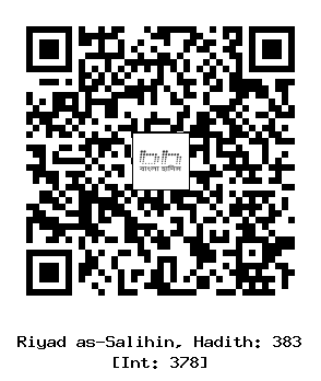 ৪/৩৮৩। আবূ হুরাইরা রাদিয়াল্লাহু ’আনহু থেকে বর্ণিত, তিনি বলেন, রাসূলুল্লাহ সাল্লাল্লাহু আলাইহি ওয়াসাল্লাম বলেছেন, ’’সেই সত্তার কসম যার হাতে আমার প্রাণ রয়েছে! তোমরা জান্নাতে প্রবেশ করবে না; যতক্ষণ না তোমরা মু’মিন হবে। এবং তোমরা মু’মিন হতে পারবে না; যে পর্যন্ত না তোমরা পরস্পরে ভালবাসা রাখবে। আমি কি তোমাদেরকে এমন কাজ বলে দেব না, যখন তোমরা তা করবে, তখন তোমরা একে অপরকে ভালবাসতে লাগবে? তোমরা পরস্পরের মধ্যে সালাম প্রচার কর।’’ (মুসলিম) [1]