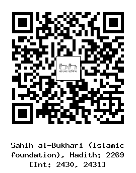 ২২৬৯। মুহাম্মদ ইবনু ইউসুফ (রহঃ) ... আনাস (রাঃ) থেকে বর্ণিত, তিনি বলেনঃ নবী সাল্লাল্লাহু আলাইহি ওয়াসাল্লাম রাস্তায় পড়ে থাকা খেজুরের পাশ দিয়ে যাচ্ছিলেন, তখন তিনি বললেন, আমার যদি আংশকা না হত যে এটি সা’দকার খেজুর তা হলে আমি এটা খেতাম।