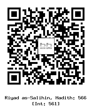 ১৮/৫৬৬। উক্ত রাবী (আবূ হুরাইরাহ) রাদিয়াল্লাহু ’আনহু থেকেই বর্ণিত, তিনি বলেন, রাসূলুল্লাহ সাল্লাল্লাহু আলাইহি ওয়াসাল্লাম বলেছেন, ’’যে ব্যক্তি (তার) বৈধ উপায়ে উপার্জিত অর্থ থেকে একটি খেজুর পরিমাণও কিছু দান করে---আর আল্লাহ তো বৈধ অর্থ ছাড়া অন্য কিছু গ্রহণই করেন না---সে ব্যক্তির ঐ দানকে আল্লাহ ডান হাতে গ্রহণ করেন। অতঃপর তা ঐ ব্যক্তির জন্য লালন-পালন করেন; যেমন তোমাদের কেউ তার অশ্ব-শাবককে লালন-পালন করে থাকে। পরিশেষে তা পাহাড়ের মত হয়ে যায়।’’ (বুখারী-মুসলিম) [1]