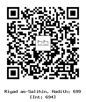 ২/৬৯৯। আবূ হুরাইরা রাদিয়াল্লাহু ’আনহু থেকে বর্ণিত, নবী সাল্লাল্লাহু আলাইহি ওয়াসাল্লাম বলেন, ভাল কথা বলাও সাদকাহ। (বুখারী ও মুসলিম, বিস্তারিত হাদীস পূর্বে উল্লিখিত হয়েছে।) [1]