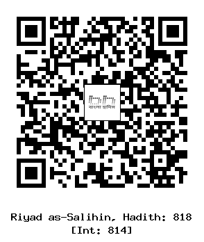 ১/৮১৮। বারা’ ইবনে ’আযেব রাদিয়াল্লাহু ’আনহু হতে বর্ণিত, তিনি বলেন, রাসূলুল্লাহ সাল্লাল্লাহু আলাইহি ওয়াসাল্লাম যখন শয্যাগ্রহণ করতেন, তখন ডান পার্শ্বে শয়ন করতেন এবং এই দো’আ পড়তেনঃ-