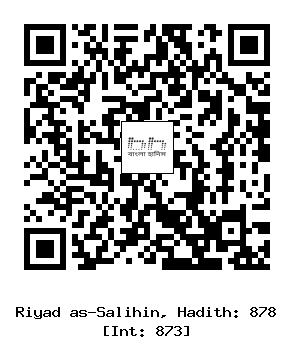 ৪/৮৭৮। কিল্দাহ ইবনে হাম্বাল রাদিয়াল্লাহু ’আনহু থেকে বর্ণিত, তিনি বলেন, আমি নবী সাল্লাল্লাহু আলাইহি ওয়াসাল্লাম এর নিকট এসে তাঁর কাছে বিনা সালামে প্রবেশ করলাম। নবী সাল্লাল্লাহু আলাইহি ওয়াসাল্লাম বললেন, ’’ফিরে যাও এবং বল, ’আসসালামু আলাইকুম, আমি ভিতরে আসব কি?’’ (আবূ দাঊদ, তিরমিযী, হাসান) [1]