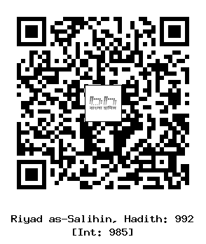 ১/৯৯২। জাবের রাদিয়াল্লাহু ’আনহু হতে বর্ণিত, রাসূল সাল্লাল্লাহু আলাইহি ওয়াসাল্লাম বলেন, ’’যখন তোমাদের কারোর বিদেশের অবস্থান দীর্ঘ হবে, তখন সে যেন অবশ্যই রাত্রিকালে নিজ গৃহে না ফিরে।’’ (বুখারী ও মুসলিম) [1]