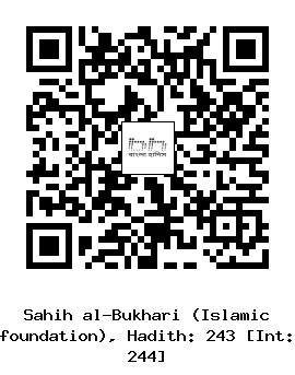 ২৪৩। আবূ’ন-নু’মান (রহঃ) .... আবূ বুরদা (রহঃ)-এর পিতা [আবূ মূসা (রাঃ)] থেকে বর্ণিত, তিনি বলেনঃ একবার আমি নবী সাল্লাল্লাহু আলাইহি ওয়াসাল্লাম এর কাছে এলাম। তখন তাঁকে দেখলাম তিনি মিসওয়াক করছেন এবং মিসওয়াক মুখে দিয়ে তিনি উ’, উ’, শব্দ করছেন যেন তিনি বমি করছেন।