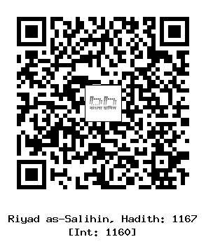 ১/১১৬৭। আয়েশা রাদিয়াল্লাহু আনহা হতে বর্ণিত, তিনি বলেন, নবী সাল্লাল্লাহু আলাইহি ওয়াসাল্লাম রাত্রির একাংশে (নামাযে) এত দীর্ঘক্ষণ কিয়াম করতেন যে, তাঁর পা ফুলে ফাটার উপক্রম হয়ে পড়ত। একদা আমি তাঁকে বললাম, ’হে আল্লাহর রাসূল! আপনি এত কষ্ট সহ্য করছেন কেন? অথচ আপনার তো পূর্ব ও পরের গুনাহসমূহকে ক্ষমা করে দেওয়া হয়েছে।’ তিনি বললেন, “আমি কি শুকরগুযার বান্দা হব না?” (বুখারী ও মুসলিম)[1]