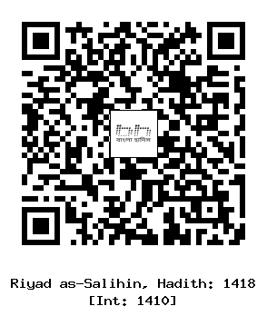 ৩/১৪১৮। উক্ত রাবী (আবূ হুরাইরা) রাদিয়াল্লাহু আনহু হতে বর্ণিত, রাসূলুল্লাহ সাল্লাল্লাহু আলাইহি ওয়াসাল্লাম বলেছেন, “লা ইলাহা ইল্লাল্লা-হু অহদাহু লা শারীকা লাহ, লাহুল মুলকু অলাহুল হামদু অহুয়া আলা কুল্লি শাইয়িন ক্বাদীর।’