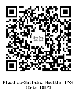 ২/১৭০৬। উক্ত রাবী (আবূ হুরাইরা) রাদিয়াল্লাহু আনহু হতে বর্ণিত, রাসূলুল্লাহ সাল্লাল্লাহু আলাইহি ওয়াসাল্লাম বলেছেন, ’’যখন তোমরা কাউকে মসজিদের মধ্যে কেনা-বেচা করতে দেখবে, তখন বলবে, ’আল্লাহ তোমার ব্যবসায়ে যেন লাভ না দেন।’ আর যখন কাউকে হারানো জিনিস খুঁজতে দেখবে, তখন বলবে, ’আল্লাহ যেন তোমাকে তা ফিরিয়ে না দেন।’’ (তিরমিযী] [1]