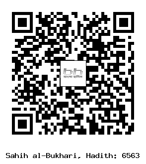 ৬৫৬৩. আদী ইবনু হাতিম (রাঃ) হতে বর্ণিত যে, নবী সাল্লাল্লাহু আলাইহি ওয়াসাল্লাম (একবার) জাহান্নামের উল্লেখ করলেন। এরপর তিনি তাঁর চেহারা ফিরিয়ে নিলেন এবং এর থেকে নিরাপত্তা চাইলেন। আবার তিনি জাহান্নামের উল্লেখ করে মুখ ফিরিয়ে নিলেন ও এর থেকে নিরাপত্তা চাইলেন। অতঃপর তিনি বললেনঃ তোমরা জাহান্নামের আগুন হতে নিজেদেরকে রক্ষা কর এক টুকরা খেজুরের বিনিময়ে হলেও। আর যে তাতেও অক্ষম সে যেন ভাল কথার বিনিময়ে হলেও নিজেকে রক্ষা করে।[1] [১৪১৩] (আধুনিক প্রকাশনী- ৬১০৯, ইসলামিক ফাউন্ডেশন- ৬১১৭)