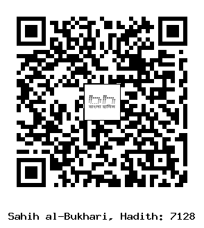 ৭১২৮. ইবনু ’উমার (রাঃ) হতে বর্ণিত। রাসূলুল্লাহ সাল্লাল্লাহু আলাইহি ওয়াসাল্লাম বলেছেন ঃ আমি ঘুমের অবস্থায় দেখতে পেলাম যে, আমি কা’বার তাওয়াফ করছি। হঠাৎ একজন লোককে দেখতে পেলাম ধূসর বর্ণের আলুথালু কেশধারী, তার মাথা থেকে পানি গড়িয়ে পড়ছে কিংবা টপকে পড়ছে। আমি জিজ্ঞেস করলাম, ইনি কে? লোকেরা বলল, ইনি মারিয়ামের পুত্র। এরপর আমি তাকাতে লাগলাম, হঠাৎ দেখতে পেলাম, এক ব্যক্তি স্থুলকায় লাল বর্ণের, কোঁকড়ানো চুল, এক চোখ কানা, চোখটি যেন ফোলা আঙ্গুরের মত। লোকেরা বলল এ-হল দাজ্জাল! তার সঙ্গে বেশি সাদৃশ্যপূর্ণ লোক হল ইবনু কাতান, বানী খুযা’আর এক লোক। [৩৪৪০] (আধুনিক প্রকাশনী- ৬৬২৯, ইসলামিক ফাউন্ডেশন- ৬৬৪৩)