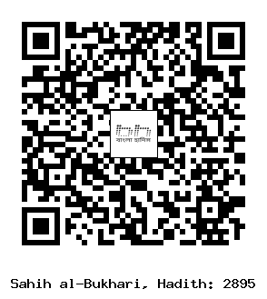 ২৮৯৪-২৮৯৫. আনাস ইবনু মালিক (রাঃ) হতে বর্ণিত। তিনি বলেন, উম্মু হারাম (রাঃ) আমাকে বলেছেন, একদা নবী (সাল্লাল্লাহু আলাইহি ওয়াসাল্লাম) তার বাড়িতে ঘুমিয়ে ছিলেন। পরে তিনি হাসতে হাসতে জেগে উঠেন। উম্মু হারাম (রাঃ) জিজ্ঞেস করলেন, হে আল্লাহর রাসূল! কিসে আপনাকে হাসাচ্ছে? তিনি বললেন, আমি আমার উম্মাতের একদলের ব্যাপারে বিস্মিত হয়েছি, তারা সিংহাসনে উপবিষ্ট রাজা-বাদশাহদের মত সমুদ্র সফর করবে। আমি বললাম, হে আল্লাহর রাসূল! আপনি আল্লাহর নিকট দু‘আ করুন, তিনি যেন আমাকেও তাদের অন্তর্ভুক্ত করেন। আল্লাহর রাসূল (সাল্লাল্লাহু আলাইহি ওয়াসাল্লাম) বললেন, তুমি তাদের মধ্যে থাকবে। অতঃপর তিনি আবার ঘুমালেন এবং হাসতে হাসতে জেগে উঠেন। আর তিনি দু’বার অথবা তিনবার অনুরূপ বললেন। আমি বললাম, হে আল্লাহর রাসূল! আপনি আল্লাহর নিকট দু’আ করুন যেন তিনি আমাকে তাদের অন্তর্ভুক্ত করেন। রাসূলুল্লাহ্ (সাল্লাল্লাহু আলাইহি ওয়াসাল্লাম) বললেন, তুমি তাদের অগ্রগামীদের মধ্যে রয়েছ। পরে ‘উবাদাহ ইবনু সামিত (রাঃ) তাঁকে বিয়ে করেন এবং তাঁকে নিয়ে জিহাদে বের হন। তাকে তাঁর আরোহণের জন্য একটি সাওয়ারীর জানোয়ারের নিকটবর্তী করা হল। কিন্তু তিনি তা থেকে পড়ে যান এবং তাঁর ঘাড় ভেঙ্গে যায়। (২৭৮৮, ২৭৮৯) (আধুনিক প্রকাশনীঃ ২৬৮১, ইসলামিক ফাউন্ডেশনঃ ২৬৯২)