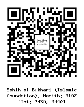 ৩১৯৭। ইব্রাহীম ইবনু মুনযির (রহঃ) ... আবদুল্লাহ ইবনু উমর (রাঃ) থেকে বর্ণিত, তিনি বলেন, একদা নবী সাল্লাল্লাহু আলাইহি ওয়াসাল্লাম লোকজনের সামনে মাসীহ দাজ্জালের কথা উল্লেখ করলেন। তিনি বললেন, আল্লাহ্ ট্যারা নন। সাবধান! মাসীহ দাজ্জালের ডান চোখ ট্যারা। তার চোখ যেন ফুলে যাওয়া আঙ্গুরের মত। আমি এক রাতে স্বপ্নে নিজেকে কাবার কাছে দেখলাম। হঠাৎ সেখানে বাদামী রং এর এক ব্যাক্তিকে দেখলাম। তোমরা যেমন সুন্দর বাদামী রঙের লোক দেখে থাক তার থেকেও বেশী সুন্দর ছিলেন তিনি। তাঁর মাথার সোজা চুল, তার দু’কাঁধ পর্যন্ত ঝূলছিল। তার মাথা থেকে পানি ফোটা ফোটা করে পড়ছিল। তিনি দু’জন লোকের কাঁধে হাত রেখে কা’বা শরীফ তাওয়াফ করছিলেন। আমি জিজ্ঞাসা করলাম ইনি কে? তারা জবাব দিলেন, ইনি হলেন, মসীহ ইবনু মারিয়াম। তারপর তাঁর পিছনে আর একজন লোককে দেখলাম। তাঁর মাথার চুল ছিল বেশ কোঁকড়ানো, ডান চোখ ট্যারা, আকৃতিতে সে আমার দেখা মত ইবনু কাতানের অধিক সা’দৃশ্যপূর্ণ। সে একজন লোকের দু’কাঁধে ভর করে কাবার চারদিকে ঘুরছিল। আমি জিজ্ঞাসা করলাম , এ লোকটি কে? তারা বললেন, এ হল মাসীহ দাজ্জাল।
