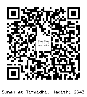 ২৬৪৩। মু’আয ইবনু জাবাল (রাযিঃ) হতে বর্ণিত, তিনি বলেন, রাসূলুল্লাহ সাল্লাল্লাহু আলাইহি ওয়াসাল্লাম প্রশ্ন করেনঃ তুমি কি জানো বান্দার উপর আল্লাহ তা’আলার কি হক (অধিকার) রয়েছে? আমি বললাম, আল্লাহ ও তার রাসূলই ভালো জানেন। তিনি বললেনঃ তাদের উপর তার হক এই যে, তারা তার ইবাদাত করবে এবং তার সাথে আর কোন কিছুকে অংশীদার স্থাপন করবে না। তিনি আবার প্রশ্ন করেনঃ তারা এগুলো করলে আল্লাহ তা’আলার উপর তাদের কি হক (অধিকার) রয়েছে তুমি কি তা জানো? আমি বললাম, আল্লাহ ও তার রাসূলই ভালো জানেন। তিনি বললেনঃ আল্লাহ তা’আলার উপর তাদের হক্ক এই যে, তিনি তাদেরকে শাস্তি দিবেন না।
