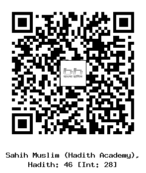 ৪৬-(৪৬/২৮) দাউদ ইবনু রুশায়দ ..... উবাদাহ্ ইবনু সামিত (রাযিঃ) হতে বর্ণিত। রাসূলুল্লাহ সাল্লাল্লাহু আলাইহি ওয়াসাল্লাম বলেছেনঃ যে ব্যক্তি বলে, “আমি সাক্ষ্য দিচ্ছি আল্লাহ ব্যতীত প্রকৃত কোন ইলাহ নেই, তিনি একক এবং মুহাম্মাদসাল্লাল্লাহু আলাইহি ওয়াসাল্লাম তার বান্দা ও রাসূল, আর নিশ্চয় ঈসা (আঃ) আল্লাহর বান্দা, তার বান্দীর (মারইয়ামের) পুত্র ও তার সে কালিমা- যা তিনি মারইয়ামকে পৌছিয়েছেন এবং তার পক্ষ থেকে প্রেরিত একটি রূহ মাত্র, জান্নাত সত্য, জাহান্নাম সত্য, আল্লাহ তাকে জান্নাতের আটটি দরজার যেটি দিয়ে প্রবেশ করাতে চাইবেন, প্রবেশ করাবেন।" (ইসলামিক ফাউন্ডেশনঃ ৪৭, ইসলামিক সেন্টারঃ ৪৮)