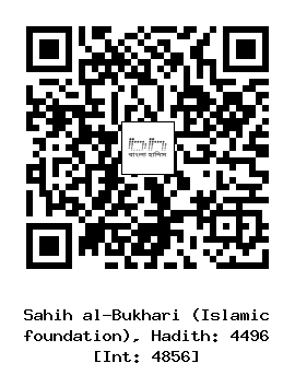 ৪৪৯৬। আবূন্ নু’মান (রহঃ) ... আবদুল্লাহ (রাঃ) থেকে বর্ণিত।فَكَانَ قَابَ قَوْسَيْنِ أَوْ أَدْنَى * فَأَوْحَى إِلَى عَبْدِهِ مَا أَوْحَى আয়াত দু’টোর ব্যাখ্যা প্রসঙ্গে ইবনু মাসউদ (রাঃ) বলেন, রাসূল সাল্লাল্লাহু আলাইহি ওয়াসাল্লাম জিবরীল (আলাইহিস সালাম) কে দেখেছেন। তাঁর ছয়শত ডানা ছিল।