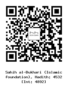 ৪৫৩২। আবূ ম’মার (রহঃ) ... উম্মে আতিয়্যা (রাঃ) হতে বর্ণিত। তিনি বলেন, আমরা রাসূল সাল্লাল্লাহু আলাইহি ওয়াসাল্লাম এর কাছে বায়’আত গ্রহণ করেছি। এরপর তিনি আমাদের সামনে পাঠ করলেন, “তারা আল্লাহর সাথে কোন কিছুকে শরীক করবে না”। এরপর তিনি আমাদেরকে মৃত ব্যাক্তির জন্য বিলাপ করে কাঁদতে নিষেধ করলেন। এ সময় এক মহিলা তার হাত টেনে নিয়ে বলল, অমুক মহিলা আমাকে বিলাপে সাহায্য করেছে, আমি তাকে এর বিনিময় দিতে চেয়েছি। নবী সাল্লাল্লাহু আলাইহি ওয়াসাল্লাম তাকে কিছুই বলেন নি। এরপর মহিলাটি উঠে চলে গেল এবং পুনরায় ফিরে আসলো, তখন রাসূল সাল্লাল্লাহু আলাইহি ওয়াসাল্লাম তাকে বায়’আত করলেন।
