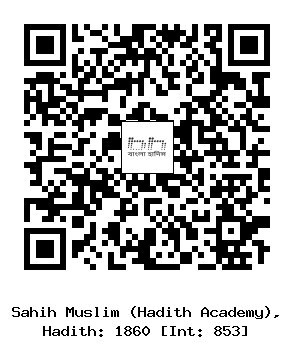 ১৮৬০-(১৬/৮৫৩) আবুত তহির, আলী ইবনু খশরাম, হারূন ইবনু সাঈদ আল আয়লী ও আহমাদ ইবনু ঈসা (রহঃ) ... আবূ মূসা আল আশ’আর (রাযিঃ) থেকে বর্ণিত। তিনি বলেন, আবদুল্লাহ ইবনু উমর (রাযিঃ) আমাকে জিজ্ঞেস করলেন, তুমি কি তোমার পিতাকে রসূলুল্লাহ সাল্লাল্লাহু আলাইহি ওয়াসাল্লাম থেকে জুমুআর দিনের বিশেষ মুহুর্তটি সম্পর্কে হাদীস বর্ণনা করতে শুনেছ? বর্ণনাকারী বলেনঃ আমি বললাম, হ্যাঁ। আমি পিতাকে বলতে শুনেছি, তিনি বলেন, আমি রসূলুল্লাহ সাল্লাল্লাহু আলাইহি ওয়াসাল্লাম কে বলতে শুনেছিঃ ইমামের বসা থেকে সালাত শেষ করার মধ্যবর্তী সময়ের মধ্যে সে মুহুর্তটি নিহিত। (ইসলামী ফাউন্ডেশন ১৮৪৫, ইসলামীক সেন্টার ১৮৫২)