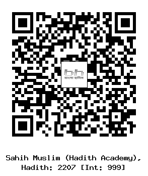 ২২০৭-(৪৪/৯৯৯) হারূন ইবনু সাঈদ আল আয়লী (রহঃ) ... আবদুল্লাহর স্ত্রী যায়নাব (রাযিঃ) থেকে বর্ণিত। তিনি রসূলুল্লাহ সাল্লাল্লাহু আলাইহি ওয়াসাল্লাম এর সময় একটি দাসী আযাদ করে দেন। অতঃপর আমি এ কথা রসূলুল্লাহ সাল্লাল্লাহু আলাইহি ওয়াসাল্লাম কে জানালাম। তিনি বললেন, “যদি তুমি এ দাসীটি তোমার মামাদের দান করতে তাহলে অনেক বেশী সাওয়াব পেতে। (ইসলামিক ফাউন্ডেশন ২১৮৬, ইসলামীক সেন্টার ২১৮৮)