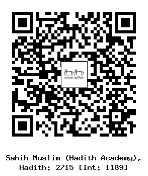 ২৭১৫-(৩২/...) আবদুল্লাহ ইবনু মাসলামাহ্ ইবনু কা’নাব (রহঃ) ..... নবী সাল্লাল্লাহু আলাইহি ওয়াসাল্লাম এর স্ত্রী আয়িশাহ (রাযিঃ) থেকে বর্ণিত। তিনি বলেন, আমি নিজ হাতে রসূলুল্লাহ সাল্লাল্লাহু আলাইহি ওয়াসাল্লাম এর ইহরাম বাঁধার প্রাক্কালে এবং ইহরামমুক্ত হবার পর কিন্তু বায়তুল্লাহ ত্বওয়াফের পূর্বে তাকে সুগন্ধি মেখে দিয়েছি। (ইসলামিক ফাউন্ডেশন ২৬৯২, ইসলামীক সেন্টার ২৬৯১)