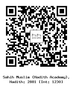২৮৮১-(.../...) ইবনু নুমায়র (রহঃ) ..... নাফি (রহঃ) থেকে বর্ণিত। হাজ্জাজ যে বছর ইবনু যুবায়র (রাযিঃ) এর বিরুদ্ধে অবতীর্ণ হল- ঐ বছর উমর (রাযিঃ) হাজ্জের (হজ্জের/হজের) সংকল্প করলেন। অবশিষ্ট বর্ণনা পূর্বোক্ত হাদীসের অনুরূপ। এ সূত্রে হাদীসের শেষাংশে উল্লেখ আছে যে, "তিনি বলতেন, যে ব্যক্তি হাজ্জ (হজ্জ/হজ) ও উমরার জন্য একত্রে ইহরাম বাঁধল, তার জন্য এক ত্বওয়াফ (তাওয়াফ/তওয়াফ)ই (সাত চক্কর) যথেষ্ট এবং উভয়ের অনুষ্ঠান সমাপ্ত না করা পর্যন্ত ইহরাম খুলবে না। (ইসলামিক ফাউন্ডেশন ২৮৫৭, ইসলামীক সেন্টার ২৮৫৬)
