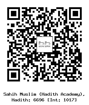 ৬৬৯৬-(.../...) উবাইদুল্লাহ ইবনু উমার আল কাওয়ারীরী, আবূ কামিল ও মুহাম্মাদ ইবনু আবদুল মালিক আল উমাবী ..... জারীর (রাযিঃ) এর সানাদে নবী সাল্লাল্লাহু আলাইহি ওয়াসাল্লাম হতে বর্ণিত। মুহাম্মাদ ইবনুল মুসান্না, আবূ বকর ইবনু আবু শাইবাহ ও উবাইদুল্লাহ ইবনু মু’আয (রহঃ) ..... জারীর (রাযিঃ) এর সানাদে নবী সাল্লাল্লাহু আলাইহি ওয়াসাল্লাম হতে এ হাদীসের অবিকল বর্ণনা করেছেন। (ইসলামিক ফাউন্ডেশন ৬৫৫৯, ইসলামিক সেন্টার ৬৬১৩)
