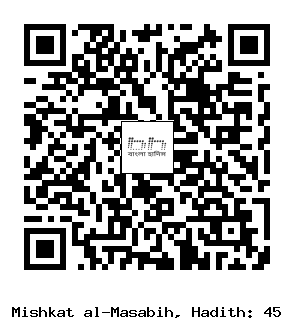 ৪৫-[৪৪] আবূ উমামাহ্ (রাঃ) হতে বর্ণিত। তিনি বলেন, জনৈক লোক রসূলুল্লাহ সাল্লাল্লাহু আলাইহি ওয়াসাল্লাম-কে জিজ্ঞেস করলো, হে আল্লাহর রসূল! ঈমান কী? তিনি (সাল্লাল্লাহু আলাইহি ওয়াসাল্লাম) বললেন, যখন তোমাকে নেক (সৎ) কাজ আনন্দ দিবে ও খারাপ (অসৎ) কাজ পীড়া দিবে, তখন তুমি মু’মিন। আবার সে লোকটি জিজ্ঞেস করলো, হে আল্লাহর রসূল! খারাপ (অসৎ) কাজ কি? উত্তরে তিনি (সাল্লাল্লাহু আলাইহি ওয়াসাল্লাম) বললেন, যখন কোন কাজ করতে তোমার মনে দ্বিধা ও সন্দেহের উদ্রেক করে (তখন মনে করবে এটা গুনাহের কাজ), তখন তা ছেড়ে দিবে। (আহমাদ)[1]