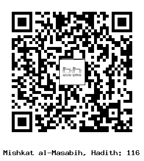 ১১৬-[৩৮] নাফি’ (রহঃ) হতে বর্ণিত। তিনি বলেন, এক লোক ইবনু ’উমার (রাঃ)-এর নিকট এসে বলল, অমুক লোক আপনাকে সালাম দিয়েছে। উত্তরে ইবনু ’উমার (রাঃ) বললেন, আমি শুনেছি, সে নাকি দীনের মধ্যে নতুন মত তৈরি করেছে (অর্থাৎ- তাক্বদীরের প্রতি অবিশ্বাস করছে)। যদি প্রকৃতপক্ষে সে দীনের মধ্যে নতুন কিছু তৈরি করে থাকে, তাহলে আমার পক্ষ হতে তাকে কোন সালাম পৌঁছাবে না। কেননা আমি রসূলুল্লাহ সাল্লাল্লাহু আলাইহি ওয়াসাল্লাম-কে বলতে শুনেছি, তিনি বলেছেন, আমার উম্মাতের অথবা এ উম্মাতের মধ্যে জমিনে ধ্বসে যাওয়া, চেহারা বিকৃত রূপ ধারণ করা, শিলা পাথর বর্ষণের মতো আল্লাহর কঠিন ’আযাব পতিত হবে, তাদের ওপর যারা তাক্বদীরের প্রতি অস্বীকারকারী হবে। (তিরমিযী, আবূ দাঊদ ও ইবনু মাজাহ্; ইমাম তিরমিযী বলেন, এ হাদীসটি হাসান সহীহ গরীব)[1]