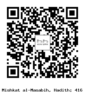 ৪১৬-[২৬] আবূ উমামাহ্ (রাঃ) হতে বর্ণিত। তিনি একবার রসূলুল্লাহ সাল্লাল্লাহু আলাইহি ওয়াসাল্লাম-এর উযূ (ওযু/ওজু/অজু)-র কথা উল্লেখ করলেন এবং বললেন, উযূর সময় তিনি (সাল্লাল্লাহু আলাইহি ওয়াসাল্লাম) চোখের দুই কোন মললেন এবং বললেন, কান দু’টি মাথারই অংশ। (ইবনু মাজাহ, আবূ দাঊদ, তিরমিযী)[1]