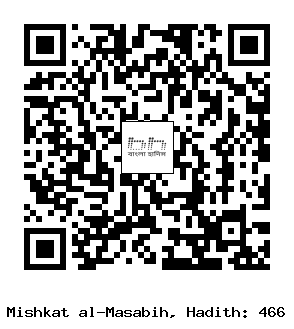 ৪৬৬-[১৬] নাফি’ (রহঃ) থেকে বর্ণিত। তিনি বলেন, ইবনু ’উমার (রাঃ) কোন কাজে গেলে আমিও তার সাথে গেলাম। তিনি তাঁর কাজ শেষ করলেন। সেদিন তাঁর কথার মধ্যে এ কথাটি ছিল, তিনি বললেন, এক ব্যক্তি কোন একটি গলি দিয়ে যাচ্ছিল। এ সময় রসূলুল্লাহ সাল্লাল্লাহু আলাইহি ওয়াসাল্লাম প্রস্রাব বা পায়খানা সেরে বের হলেন। ঐ লোকটির সাথে তাঁর দেখা হলে সে সালাম দিল। কিন্তু তিনি (সাল্লাল্লাহু আলাইহি ওয়াসাল্লাম) তার সালামের উত্তর দিলেন না। লোকটি যখন অন্য গলির দিকে মোড় নিচ্ছিল, তিনি (তায়াম্মুম করার জন্য) দেওয়ালে দুই হাত মেরে মুখমণ্ডল মাসেহ করলেন। অতঃপর আবার দেওয়ালে হাত মেরে কনুইসহ দু’হাত মাসাহ করলেন (অর্থাৎ- তায়াম্মুম করলেন)। এরপর লোকটির সালামের উত্তর দিলেন এবং বললেন, তোমাকে সালামের উত্তর দিতে পারিনি। কারণ আমি বে-উযূ ছিলাম, এটাই ছিল (তোমার সালামের উত্তর দিতে আমার) বাধা। (আবূ দাঊদ)[1]