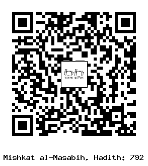 ৭৯২-[৩] আবূ হুমায়দ আস্ সা’ইদী (রাঃ)হতে বর্ণিত। তিনি রসূলুল্লাহ সাল্লাল্লাহু আলাইহি ওয়াসাল্লাম-এর একদল সাহাবীর মধ্যে বললেন, রসূলুল্লাহ সাল্লাল্লাহু আলাইহি ওয়াসাল্লাম-এর সালাত (সালাত/নামায/নামাজ) আপনাদের চেয়ে বেশি আমি মনে রেখেছি। আমি তাঁকে দেখেছি, তিনি তাকবীরে তাহরীমা বলার সময় দু্’ হাত দু’ কাঁধ বরাবর উঠাতেন। রুকূ’ করার সময় পিঠ নুইয়ে রেখে দু’ হাত দিয়ে দু’ হাঁটু শক্ত করে ধরতেন। আর মাথা উঠিয়ে ঠিক সোজা হয়ে দাঁড়াতেন। এতে প্রতিটি গ্রন্থি স্ব-স্ব স্থানে চলে যেত। তারপর তিনি সিজদা্ (সিজদা/সেজদা) করতেন। এ সময় হাত দু’টি মাটির সাথে বিছিয়েও রাখতেন না, আবার পাঁজরের সাথে মিশাতেনও না এবং দু’ পায়ের আঙ্গুলগুলোর মাথা ক্বিবলা (কিবলা/কেবলা)মুখী করে রাখতেন। এরপর দু’ রাক্’আতের পরে যখন বসতেন বাম পায়ের উপরে বসতেন ডান পা খাড়া রাখতেন। সর্বশেষ রাক্’আতে বাম পা বাড়িয়ে দিয়ে আর অপর পা খাড়া রেখে নিতম্বের উপর (ভর করে) বসতেন। (বুখারী)[1]