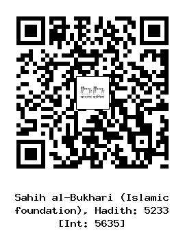 ৫২৩৩। মূসা ইবনু ইসমাঈল (রহঃ) ... বারা ইবনু আযিব (রাঃ) থেকে বর্ণিত। তিনি বলেন, রাসুলুল্লাহ সাল্লাল্লাহু আলাইহি ওয়াসাল্লাম আমাদের সাতটি জিনিসের হুকুম দিয়েছেন এবং সাতটি জিনিস থেকে নিষেধ করেছেন। তিনি আমাদের হুকুম দিয়েছেনঃ রোগীর সেবা করতে, জানাযার পেছনে যেতে, তিনি দানকারীর জবাব দিতে দাওয়াতকারীর দাওয়াত গ্রহন করতে বেশী বেশী সালাম দিতে, মাযলুমের সাহায্য করতে এবং কসম ঠিক রাখার সুযোগ কবে দিতে। আর আমাদের তিনি নিষেধ করেছেনঃ স্বর্ণের আংটি ব্যবহার করতে, কিংবা তিনি বলেছেন রুপার পাত্রে পানি পান করতে মায়াসির অর্থাৎ এক জাতীয় নরম ও মসৃণ রেশমী কাপড় কাসসী অর্থাৎ রেশম মিশ্রিত কাপড় ব্যবহার করতে এবং পাতলা কিংবা মোটা এবং অলংকার খচিত রেশমী কাপড় ব্যবহার করতে।