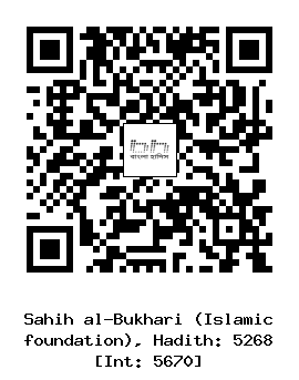 ৫২৬৮। ইবরাহীম ইবনু হামযা (রহঃ) ... সায়েব (রাঃ) থেকে বর্ণিত। তিনি বলেন, আমার খালা আমাকে রাসুলুল্লাহ সাল্লাল্লাহু আলাইহি ওয়াসাল্লাম এর কাছে নিয়ে গেলেন। এরপর তিনি বললেন ইয়া রাসুলাল্লাহ! আমর বোনের ছেলেটি অসুস্থ। তখন নবী সাল্লাল্লাহু আলাইহি ওয়াসাল্লাম আমার মাথায় হাত বুলালেন এবং আমার জন্য বরকতের দু’আ করলেন। এরপর তিনি উযূ (ওজু/অজু/অযু) করলেন। আমি তার উযূর অবশিষ্ট পানি পান করলাম এবং তার পিঠের পেছনে গিয়ে দাঁড়ালাম। তখন আমি মোহরে নবুওয়াতের দিকে তাকিয়ে দেখলাম সেটি তার দুকাঁধের মধ্যবর্তী স্থানে অবস্থিত এবং খাটিয়ার গোল ঘুন্টির মত।