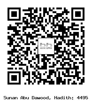 ৪৪৯৫। আবূ রিমসাহ (রাঃ) সূত্রে বর্ণিত। তিনি বলেন, আমি আমার পিতার সঙ্গে থাকা অবস্থায় নবী সাল্লাল্লাহু আলাইহি ওয়াসাল্লাম আমার পিতাকে প্রশ্ন করলেনঃ সে কি তোমার ছেলে? তিনি বললেন, হ্যাঁ, কা’বার রবের কসম! তিনি (সাল্লাল্লাহু আলাইহি ওয়াসাল্লাম) বললেনঃ ঠিক বলছো তো? তিনি বললেন, আমি এ ব্যাপারে সাক্ষ্য দিচ্ছি। বর্ণনাকারী বলেন, আমার পিতার সঙ্গে আমার সাদৃশ্য এবং আমার সম্পর্কে পিতার কসমকে কেন্দ্র করে রাসূলুল্লাহ সাল্লাল্লাহু আলাইহি ওয়াসাল্লাম মুচকি হেসে বললেনঃ ’’জেনে রাখো! তার কোনো অপরাধ তোমাকে অভিযুক্ত করবে না এবং তোমার কোনো অপরাধের জন্যও সে অভিযুক্ত হবে না।’’ অতঃপর রাসূলুল্লাহ সাল্লাল্লাহু আলাইহি ওয়াসাল্লাম তিলাওয়াত করলেনঃ ’’তোমাদের কাউকে অপরের পাপের বোঝা বহন করতে হবে না।’’ (সূরা আন’আমঃ ১৬৪)।[1]