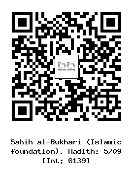 ৫৭০৯। মুহাম্মদ ইবনু বাশশার (রহঃ) ... আবূ জুহায়ফা (রহঃ) এর পিতা থেকে বর্ণিত। তিনি বলেন, নবী সাল্লাল্লাহু আলাইহি ওয়াসাল্লাম সালমান (রাঃ) ও আবূ দারদা (রাঃ) এর মধ্যে ভ্রাতৃত্ব সৃষ্টি করে দেন। এরপর একদিন সালমান (রাঃ) আবূ দারদা (রাঃ) এর সঙ্গে দেখা করতে গেলেন, তখন তিনি উম্মে দারাদা (রাঃ) কে অতি সাধারন পোশাকে দেখতে পেলেন। তিনি তাকে জিজ্ঞাসা করলেন তোমার কি হয়েছে? তিনি বললেনঃ তোমার ভাই আবূ দারদা (রাঃ) এর দুনিয়াতে কিছুর প্রয়োজন নেই। ইতিমধ্যে আবূ দারদা (রাঃ) এলেন। তারপর তার জন্য খাবার প্রস্তুত করে তাঁকে বললেনঃ আপনি খেয়ে নিন। আমি তো সিয়াম পালন করছি। তিনি বললেনঃ আপনি যতক্ষণ না খাবেন ততক্ষণ আমিও খাব না।