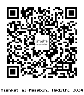 ৩৮৩৪-[৪৭] মিকদাম ইবনু মা’দীকারিব (রাঃ) হতে বর্ণিত। তিনি বলেন, রাসূলুল্লাহ সাল্লাল্লাহু আলাইহি ওয়াসাল্লাম বলেছেনঃ শাহীদের জন্য আল্লাহর নিকট ছয়টি পুরস্কার সুরক্ষিত রয়েছে। ১- যুদ্ধরত অবস্থায় তার রক্তের ফোঁটা মাটিতে ঝরা মাত্রই তাকে ক্ষমা করে দেয়া হয় এবং তাকে জান্নাতের আবাসস্থল দেখানো হয়। ২- তাকে কবরের ’আযাব হতে নিষ্কৃতি দেয়া হয়। ৩- হাশরের ময়দানের মহাভীতি হতে দূরে রাখা হয়। ৪- (কিয়ামতের দিন) সম্মানজনকভাবে তার মাথায় ইয়াকূতের মুকুট পরানো হবে, যার মধ্যে খচিত একটি ইয়াকূত দুনিয়া ও তার সমস্ত ধন-সম্পদ হতে উত্তম। ৫- সুন্দর বড় বড় চক্ষুবিশিষ্ট বাহাত্তর জন হূরকে তার সঙ্গিনীরূপে দেয়া হবে। ৬- তার নিকটাত্মীয়দের মধ্যে সত্তরজনের সুপারিশ কবুল করা হবে। (তিরমিযী, ইবনু মাজাহ)[1]