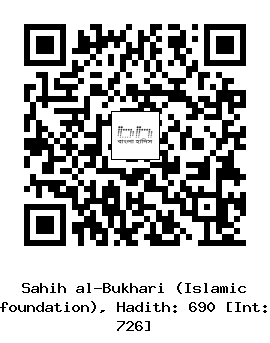 ৬৯০। কুতাইবা ইবনু সায়ীদ (রহঃ) ... ইবনু আব্বাস (রাঃ) থেকে বর্ণিত, তিনি বলেন, একরাতে আমি নবী সাল্লাল্লাহু আলাইহি ওয়াসাল্লাম এর সঙ্গে সালাত (নামায/নামাজ) আদায় করতে গিয়ে তাঁর বামপাশে দাঁড়ালাম। তিনি আমার মাথার পেছনের দিক ধরে তাঁর ডানপাশে নিয়ে এলেন। তারপর সালাত আদায় করে শুয়ে পড়লেন। পরে তার কাছে মুয়ায্‌যিন এলো। তিনি উঠে সালাত আদায় করলেন, কিন্তু (নতুনভাবে) উযূ (ওজু/অজু/অযু) করেননি।