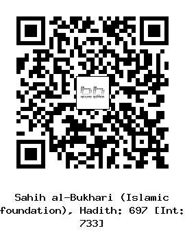 ৬৯৭। কুতাইবা ইবনু সায়ীদ (রহঃ) ... আনাস ইবনু মালিক (রাঃ) থেকে বর্ণিত, তিনি বলেন, রাসূলুল্লাহ সাল্লাল্লাহু আলাইহি ওয়াসাল্লাম ঘোড়া থেকে পড়ে গিয়ে আহত হন। তাই তিনি আমাদের নিয়ে বসে সালাত (নামায/নামাজ) আদায় করেন। আমরাও তাঁর সঙ্গে বসে সালাত আদায় করি। তারপর তিনি ফিরে বললেনঃ ইমাম অনুসরণের জন্যই বা তিনি বলেছিলেন, ইমাম নির্ধারন করা হয় তাঁর অনুসরনের জন্য। তাই যখন তিনি তাকবীর বলেন, তখন তোমরাও তাকবীর বলবে, যখন রুকু করেন তখন তোমরাও রুকু করবে। যখন তিনি উঠেন তখন তোমরাও উঠবে। তিনি যখন سَمِعَ اللَّهُ لِمَنْ حَمِدَهُ বলবে তখন তোমরা رَبَّنَا لَكَ الْحَمْدُ বলবে এবং তিনি যখন সিজদাহ করেন তখন তোমরাও সিজদা করবে।